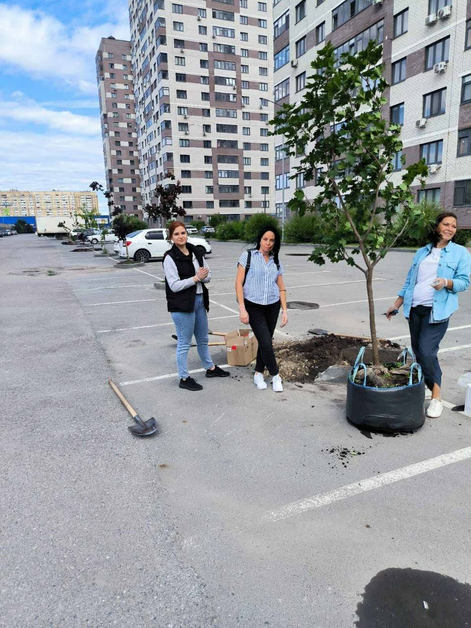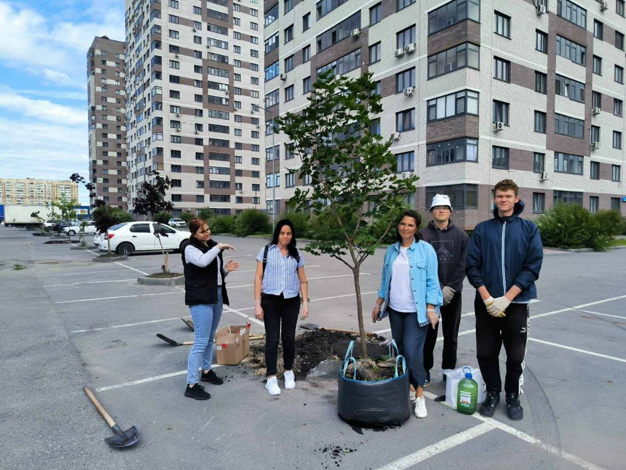 Посадка деревьев в ЖК Кристалл