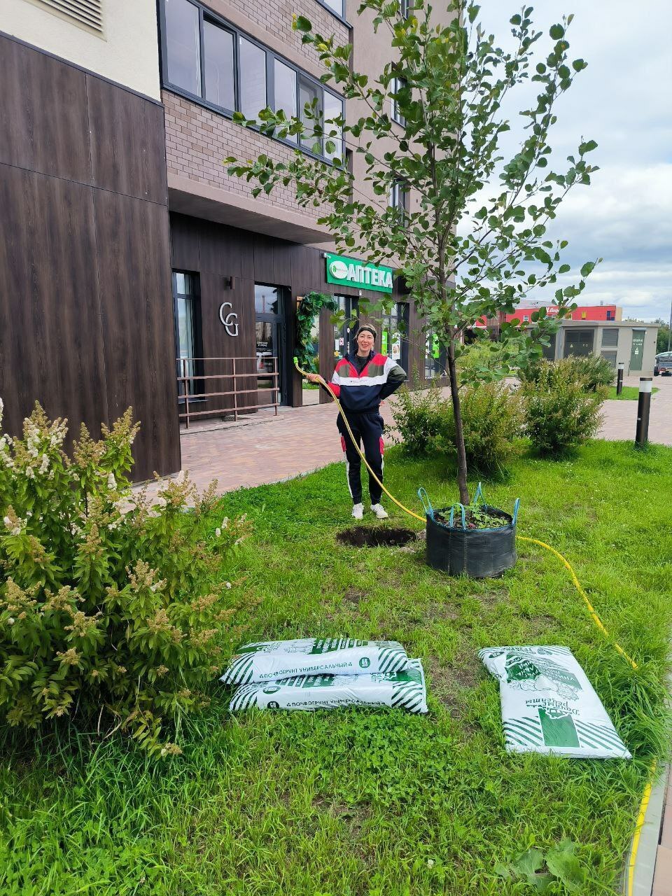 Посадка деревьев в ЖК Кристалл