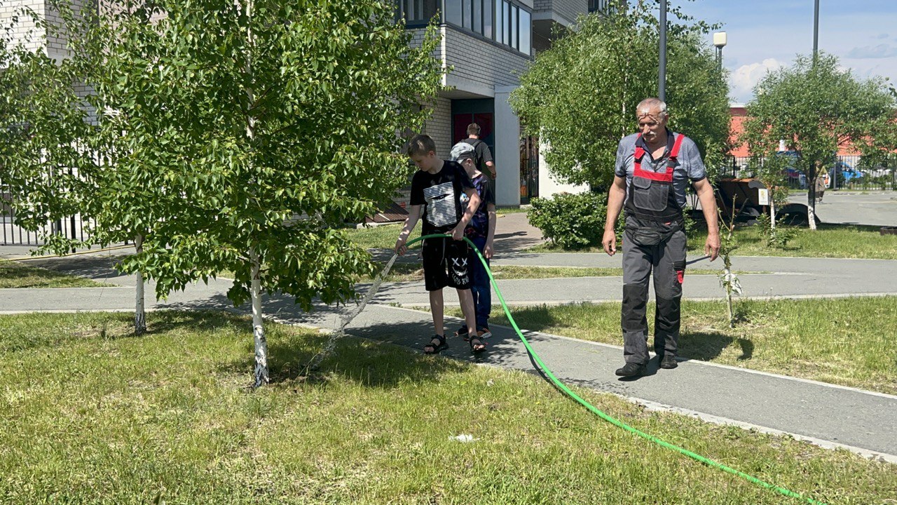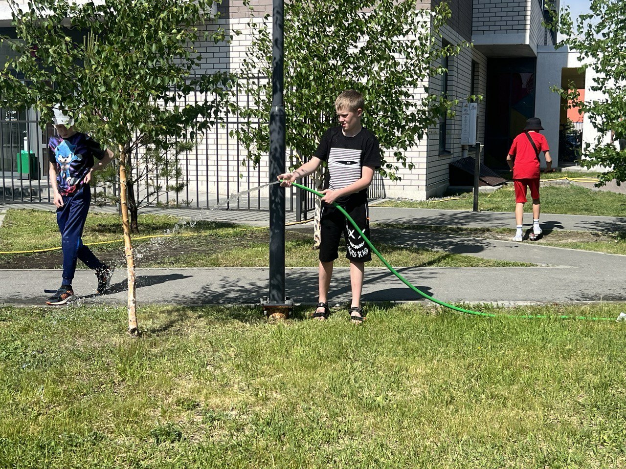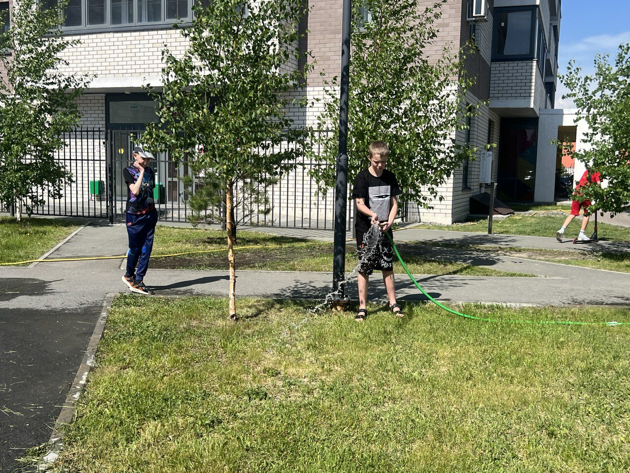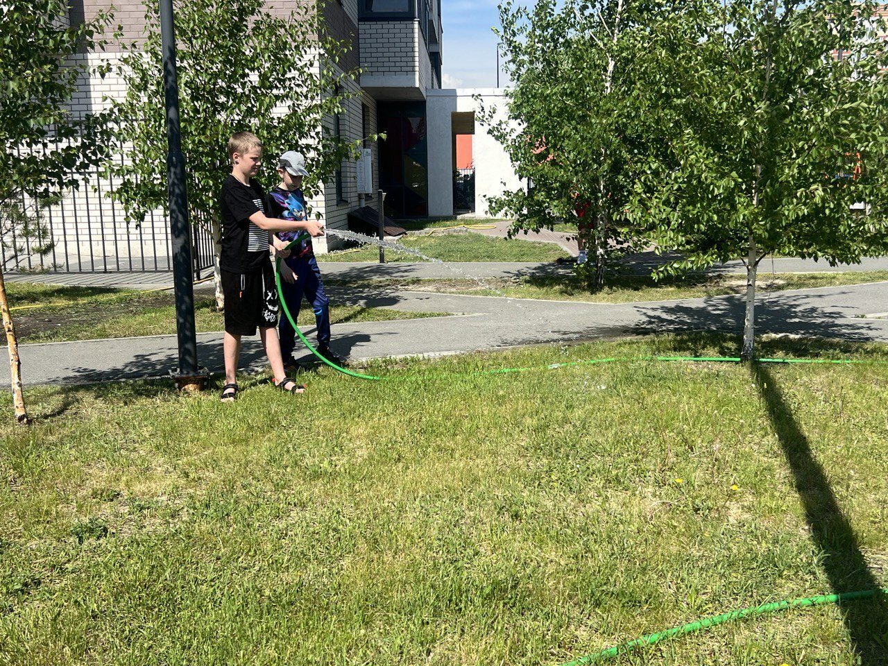 Полив газонов 29.05.2025 совместно с жителями Кристалл
